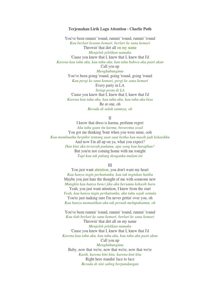 Terjemahan Lagu Attention By Charlie Puth Dalam Bahasa Indonesia